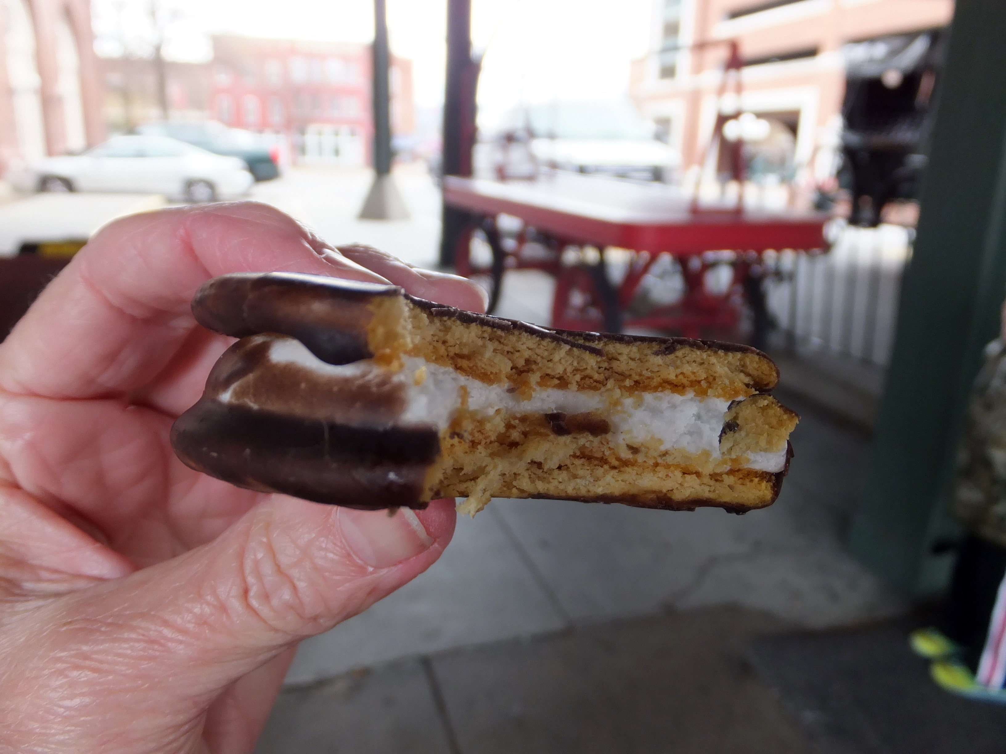 Mid morning snack – second dog of the day – beef, onion, coleslaw, spicy chipolata sauce and banana peppers washed down with the local’s favourite drink….coca cola